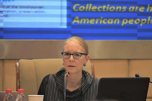讲座上,Jane Milosch就美国当代工艺品、“史密森艺术研究项目”、博物馆策展人对于作品和思想研究、藏品运用技术材料及艺术工艺品的制作等方面作了介绍,向我们展示了史密森学会下博物馆的众多馆藏品。史密森学会藏品丰富,涉及领域广泛。她指出,博物馆策展人的工作主要是通过做展览、研究项目等方式,向大众介绍展品,帮助大众了解作品背后的文化和故事。在想象性的创作与实在性的研究中寻找平衡并非易事,因此需要通过展览,让大家看到实在的作品,同时进行了思考。就手工艺与当代社会的关系问题,Jane Milosch点明,我们可以通过艺术的方式去表达对当代某些社会问题的看法,并在此过程中治愈内心。