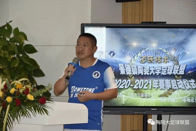 仪式上,道氏技术董事长、88级师兄荣继华深情的说到,母校在陶瓷行业里面最大的优势,是工科里面有艺术,艺术里面有工科,对陶瓷行业的发展起了重要的作用。道氏技术在发展过程中得到了校友们的大力支持,他们也很乐意为陶瓷行业,为广大校友提供力所能及的支持,回报行业,回报校友,愿意将公司内部足球场作为陶大足球联盟的一个长期训练基地,通过体育运动加强校友的凝聚力,并希望通过这次与陶大足球联盟的合作,将更多的校友凝聚起来,为佛山、为中国建陶事业贡献一份力量。